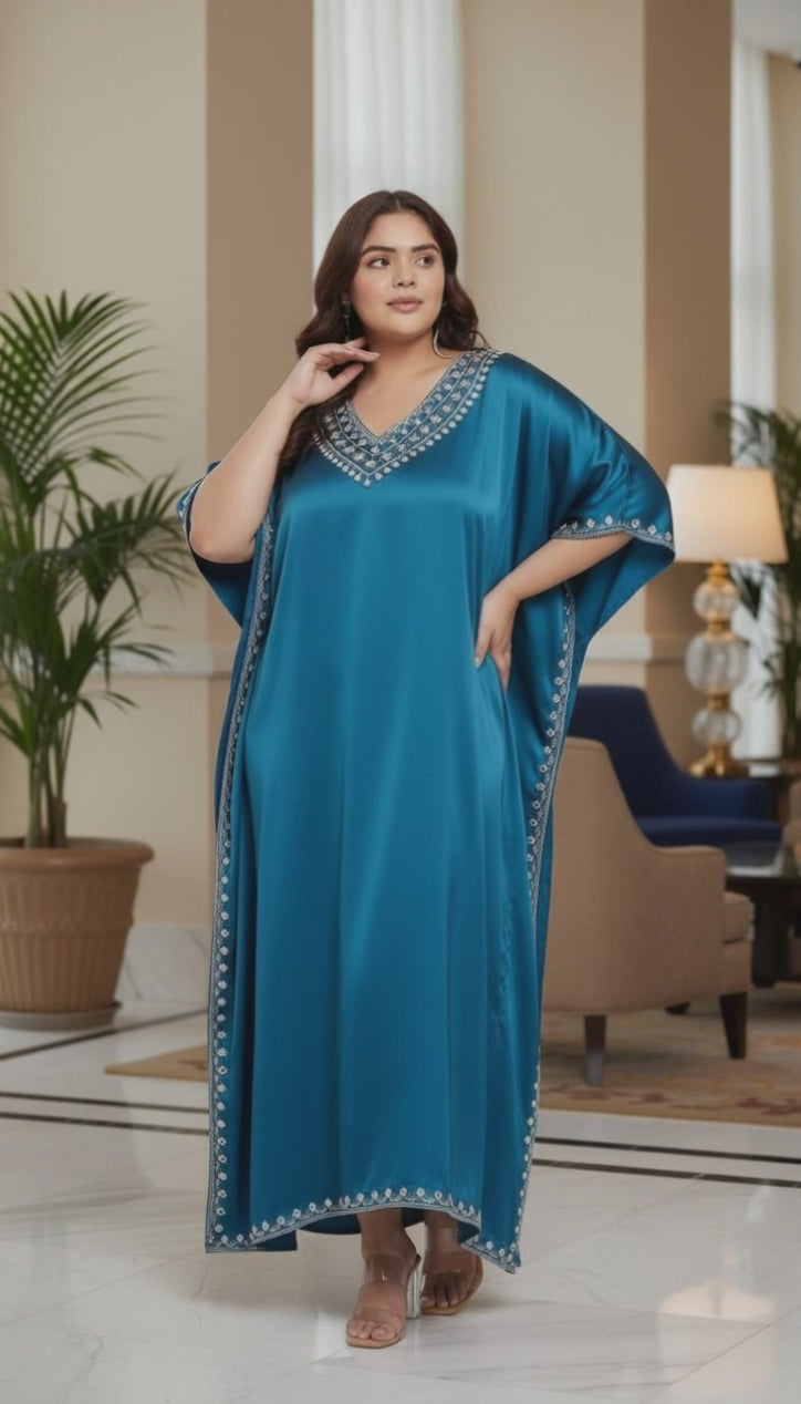 Embroidery Corsair Blue Satin Plus Size Kaftan for Women