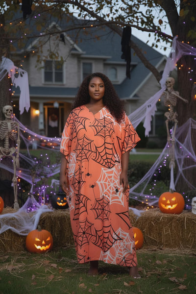 Enjoy the charm of our Spider Web Melon Polyester Plus Size V Neck Kaftan for Women. It's an essential piece for those who appreciate style, comfort, and individuality.