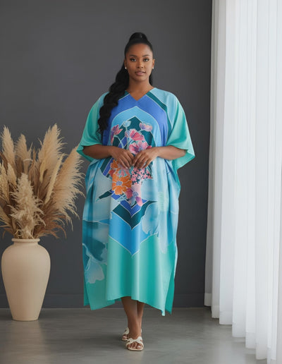 Shop our stylish plus-size polyester kaftan, perfect for resort wear, beach cover-ups, or loungewear. Lightweight, flowy, and comfortable, designed to flatter every body type. Ideal for summer and fashion lovers.