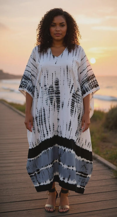 Discover the perfect fit in our collection of Tie Dye Printed Black Polyester Kaftans tailored for plus size women. Elevate your style with our fashionable options!