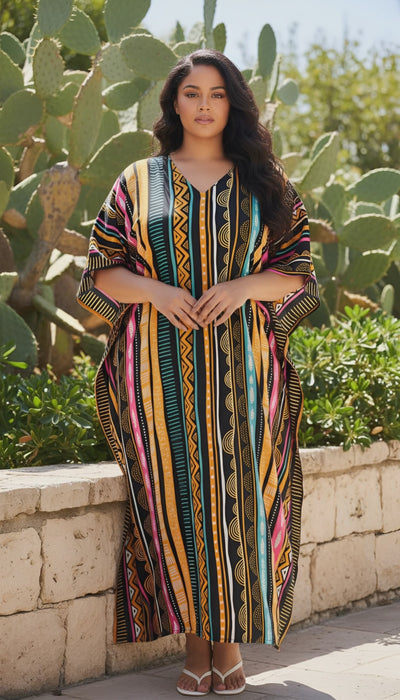 Tribal Printed Multicolor Polyester Kaftan For Plus Size Women