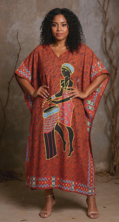 Step out in confidence with our fashionable Brown Tribal Printed Polyester Kaftan Dress crafted for plus size women. Shop now and slay in style!