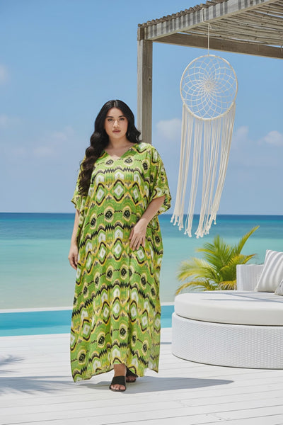 Tribal Printed Green Polyester Kaftan Dress For Plus Size Women