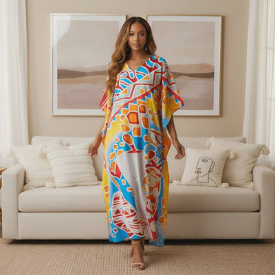 Search our online store for the perfect Polyester Tribal Printed Multicolor Plus Size Kaftan for women. Explore our chic and stylish options. Details: Pull-On Closure Fabric: Polyester Pattern: Tribal Printed Color: Multicolor Length: Maxi 52" Inches Size Types: Plus Size Silhouette: Fit and Flare Neckline: V-Neck Sleeve Type: Kimono Fit Type: Loose SKU: SG152-8346 Washing Care: Delicately hand wash or machine wash with a gentle cycle to preserve the garment's beauty and longevity.  |