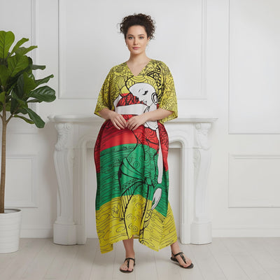 Printed Tribal Multicolor Polyester Kaftan For Plus Size Women