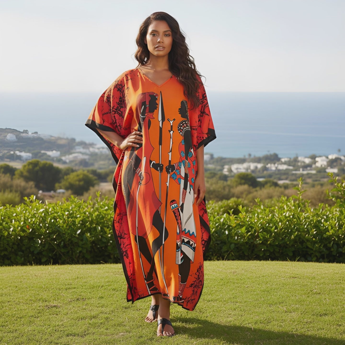 Explore a variety of stylish and comfortable tribal printed kaftan dresses in multicolor polyester, perfect for plus size women. Shop now! Details: |