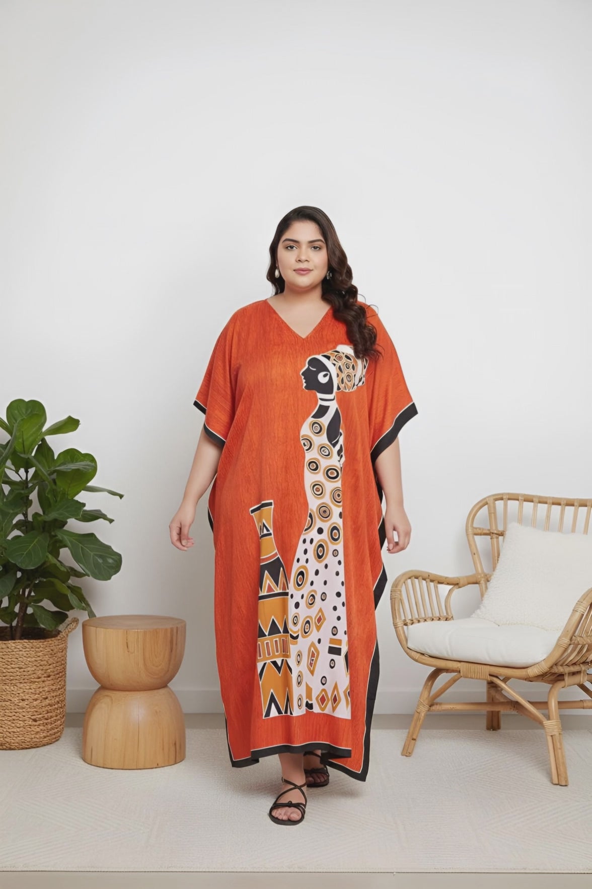 Discover your next go-to Women's Plus Size Kaftan in stunning Tribal Printed Orange Polyester. Shop now for fashionable designs that highlight your unique beauty!