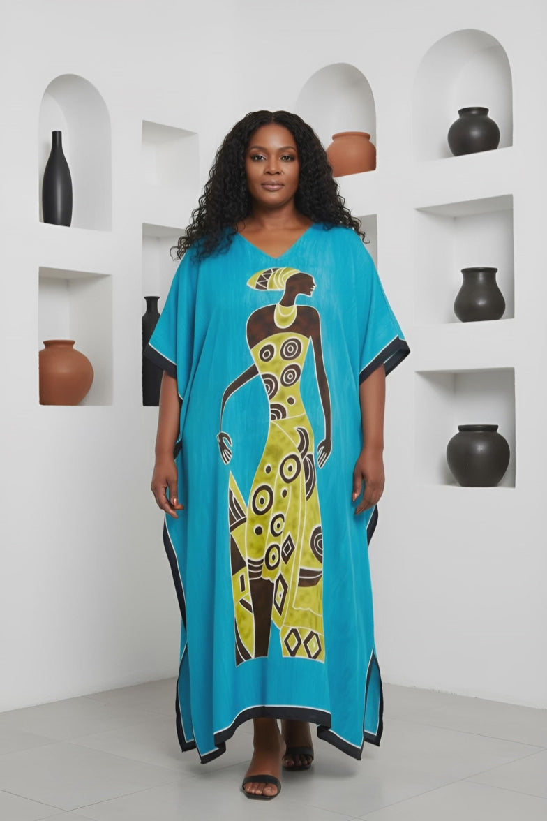 Express your unique style with our Sky Blue Tribal Printed Polyester Kaftan made for plus size women. Find the perfect blend of comfort and style in our collection.