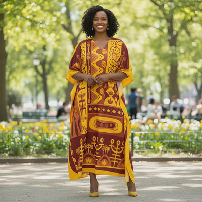 Find your new favorite Women's Plus Size Tribal Printed Yellow Polyester Kaftan on our website. Start shopping now for chic and flattering styles! Details: Pull-On Closure Fabric: Polyester Pattern: Tribal Printed Color: Yellow Length: Maxi 52" Inches Size Types: Plus Size Silhouette: Fit and Flare Neckline: V-Neck Sleeve Type: Kimono Fit Type: Loose SKU: SG152-8335 Washing Care: Delicately hand wash or machine wash with a gentle cycle to preserve the garment's beauty and longevity. |
