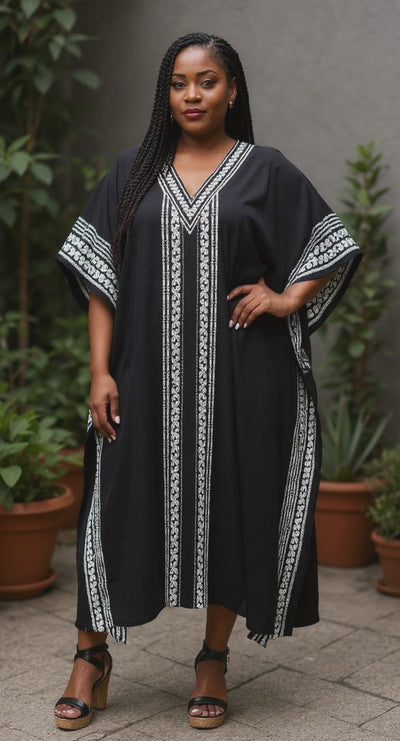 Shop for your new favorite Black Polyester Geometric Style Plus Size Kaftan for women on our website. Find chic and flattering designs to elevate your style!