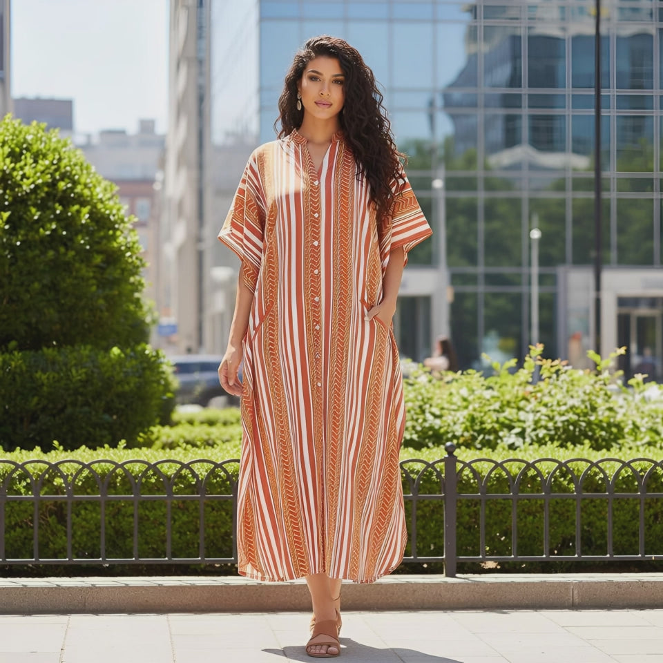 Check out our range of Color Orange Polyester Long Gown Caftans crafted for plus size women to make a fashion statement today!