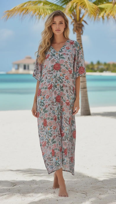 Take your beach outfit to the next level with our Resort Wear Floral Pattern Polyester Plus Size Kaftan for Women, ensuring a flawless fit for your upcoming vacation.