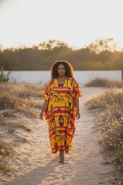 Shop our stylish plus-size polyester kaftan, perfect for resort wear, beach cover-ups, or loungewear. Lightweight, flowy, and comfortable, designed to flatter every body type making it a flattering choice for every woman.